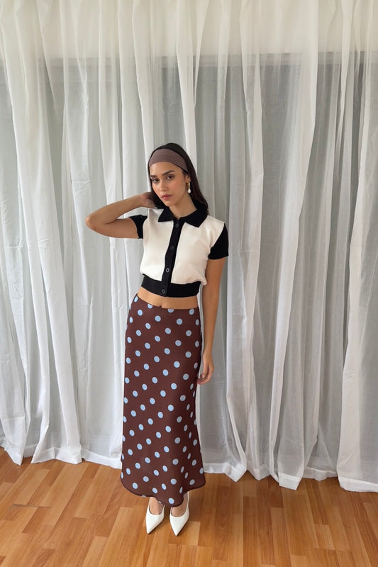 Falda polka dots marron/celeste
