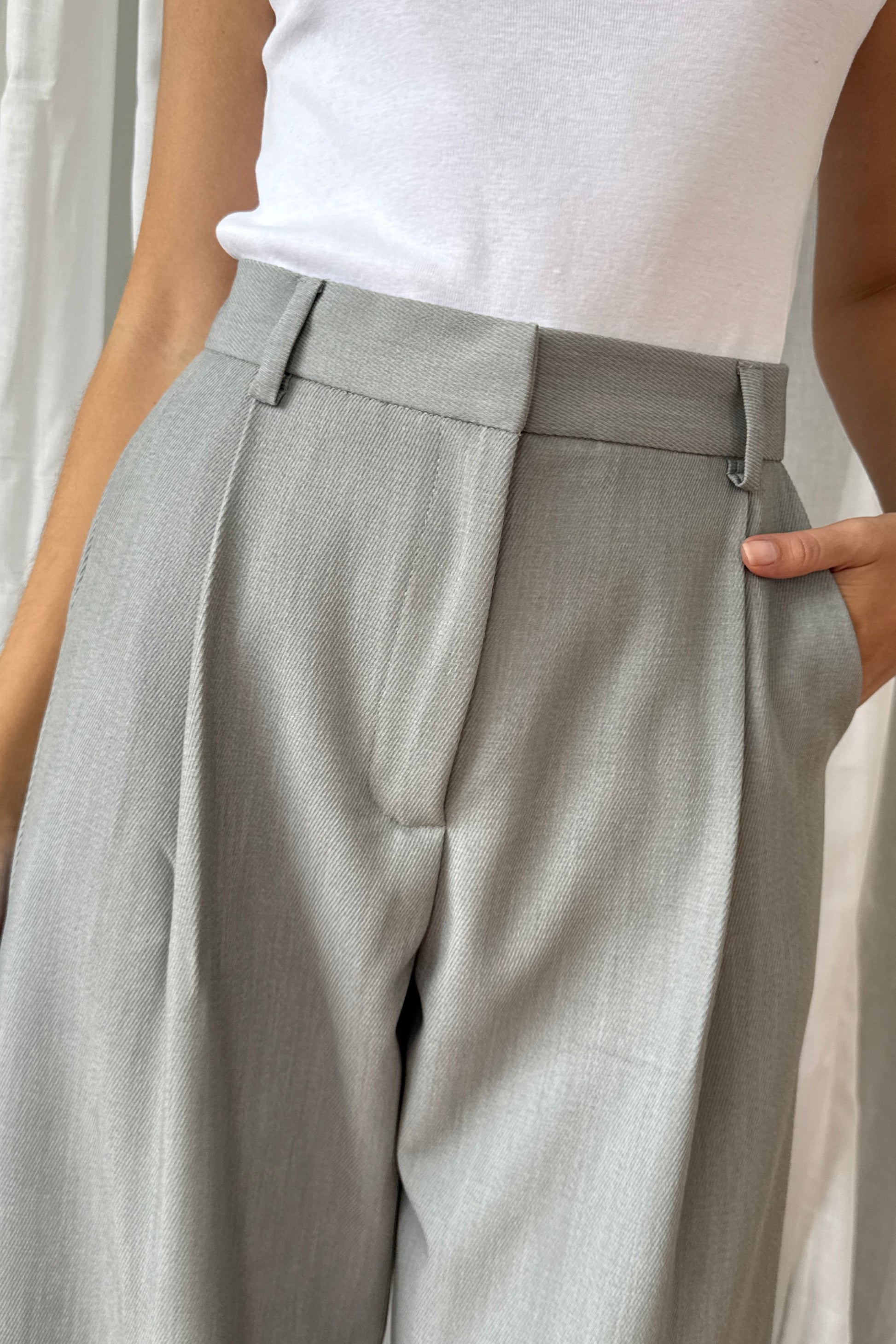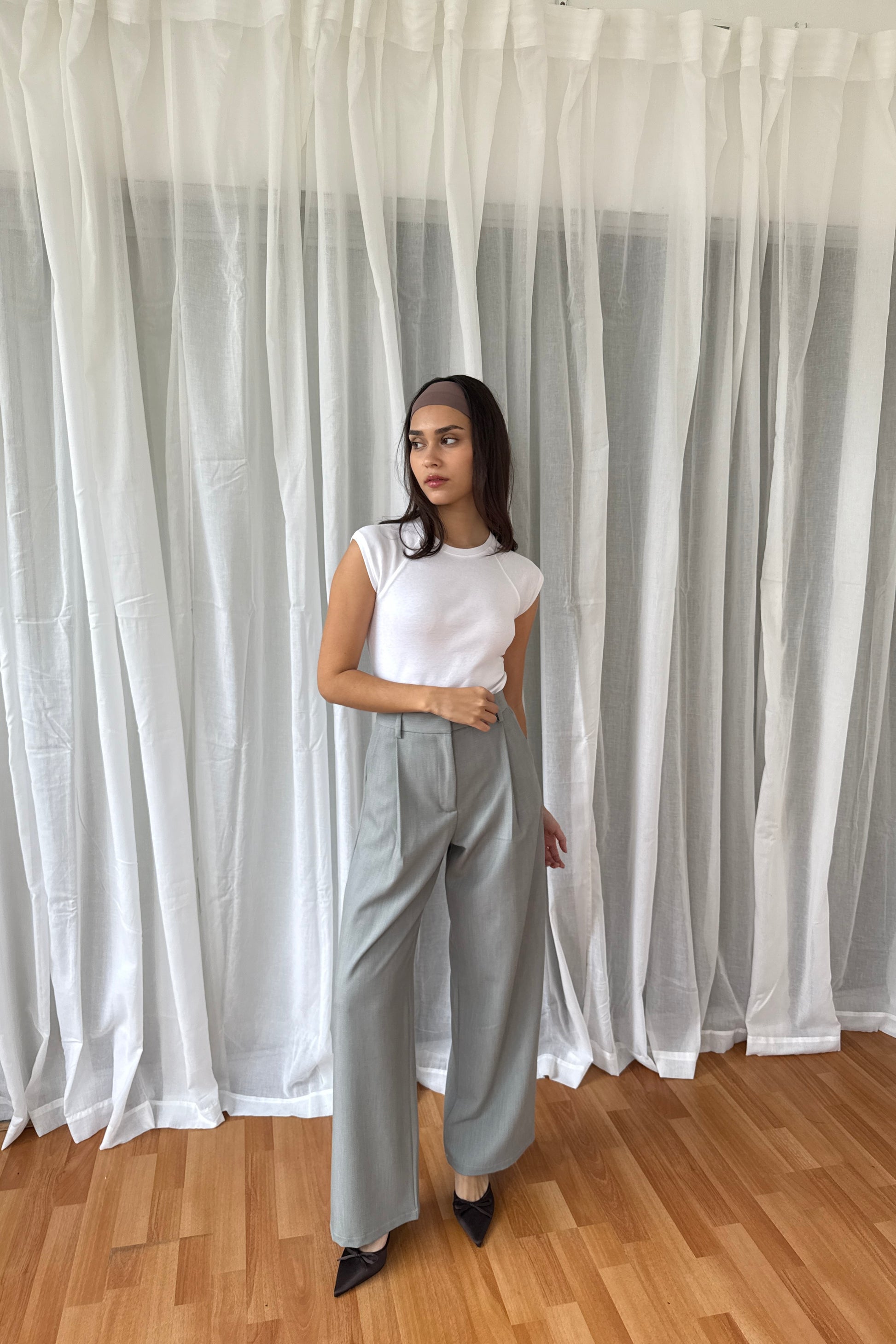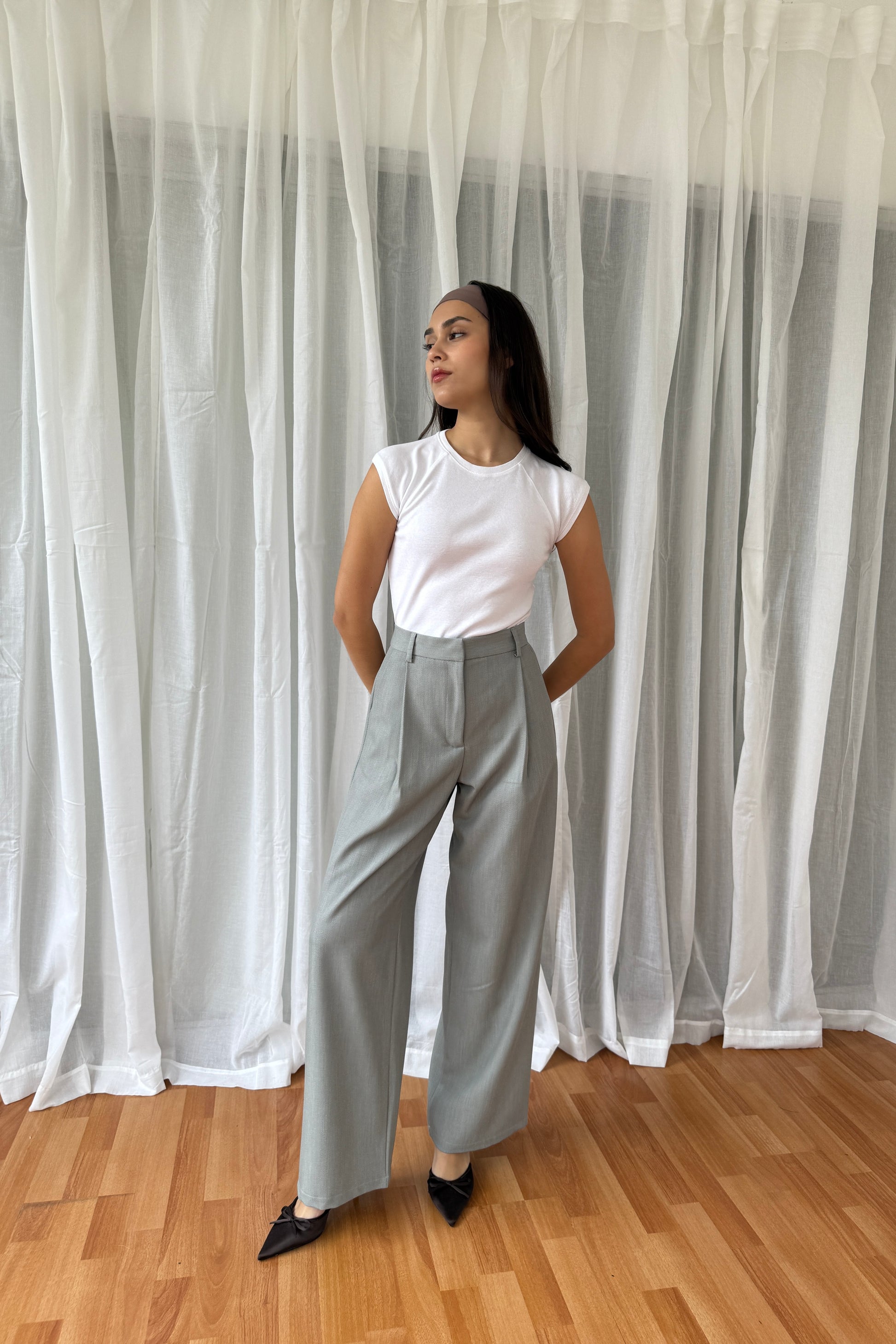 Pantalón estilo sastre con texturas de rayas verticales, lleva 1 pinza en cada lateral, bolsillos, trabilla y broche invisible.